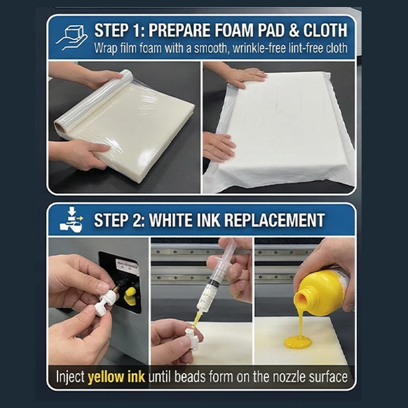 Step 2: White Ink Nozzle Bleeding and Replacement Maintenance